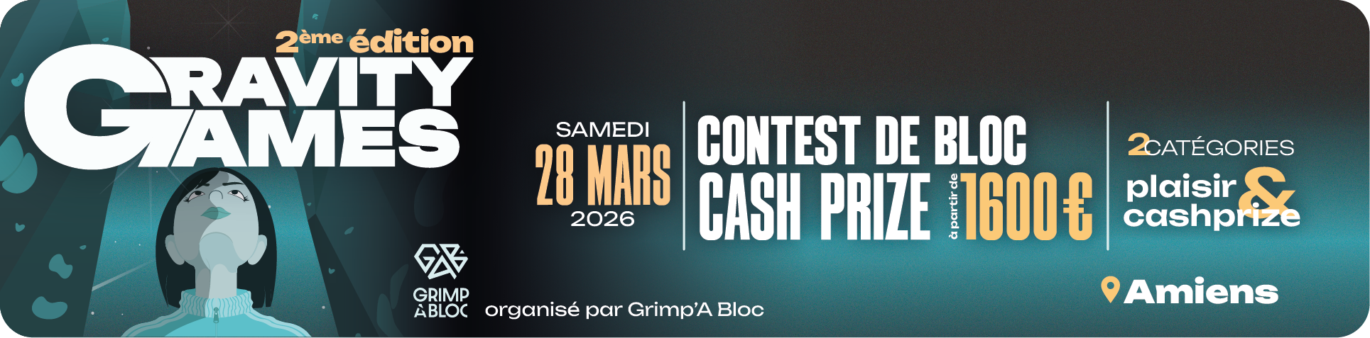 Grimp'A Bloc présente la deuxième édition des "Gravity games", un contest de bloc à AMIENS (80). Viens te mesurer aux meilleurs, repousser tes limites et sentir l'adrénaline de la compétition dans une ambiance conviviale et survoltée.🧗♂️💪